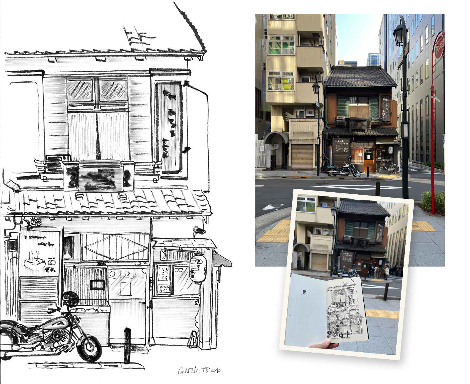 Everything about the making of this observational sketch was great. I never usually spend this long on a brush pen drawing - 45 minutes, a record! The time just flew, I was in my absolute happiest place… standing on a street corner of Tokyo, perfect weather, good lighting, doodling away without a care in the world.